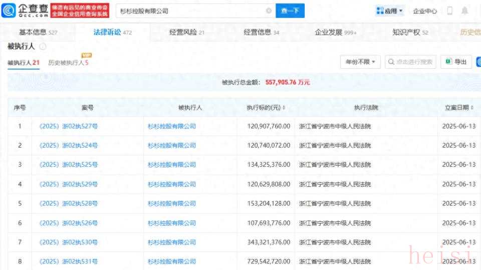 近日,中国知名民营控股企业——杉杉控股及其关联公司再陷债务危机,新增多个被执行人信息,总金额高达18.3亿元人民币。这一消息再次将这家曾以“杉杉系”闻名、由著名企业家张近东创立的庞大商业帝国推向舆论的风口浪尖。值得注意的是,此番巨额被执行,正值其创始人张近东先生不幸离世之后不久,更引人关注的是,“杉杉系”在失去核心掌舵人后,似乎正经历着前所未有的动荡与挑战。