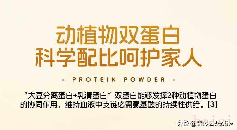 贝因美主打母婴营养,蛋白粉温和易吸收,好比“宝宝的第一口营养”。含大豆蛋白和钙质,帮助儿童发育和成人补钙,口感清淡不甜腻,全家老少都适用。