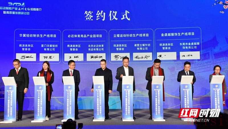 活动现场,必迈体育、立耀棉袜、金虞越服饰、厚源医用轻纺、华翼轻纺等5个产业项目和无忧传媒、派燃烧、曼易莲、香奈美、宗联、盛腾青等6个品牌运营项目进行现场签约。