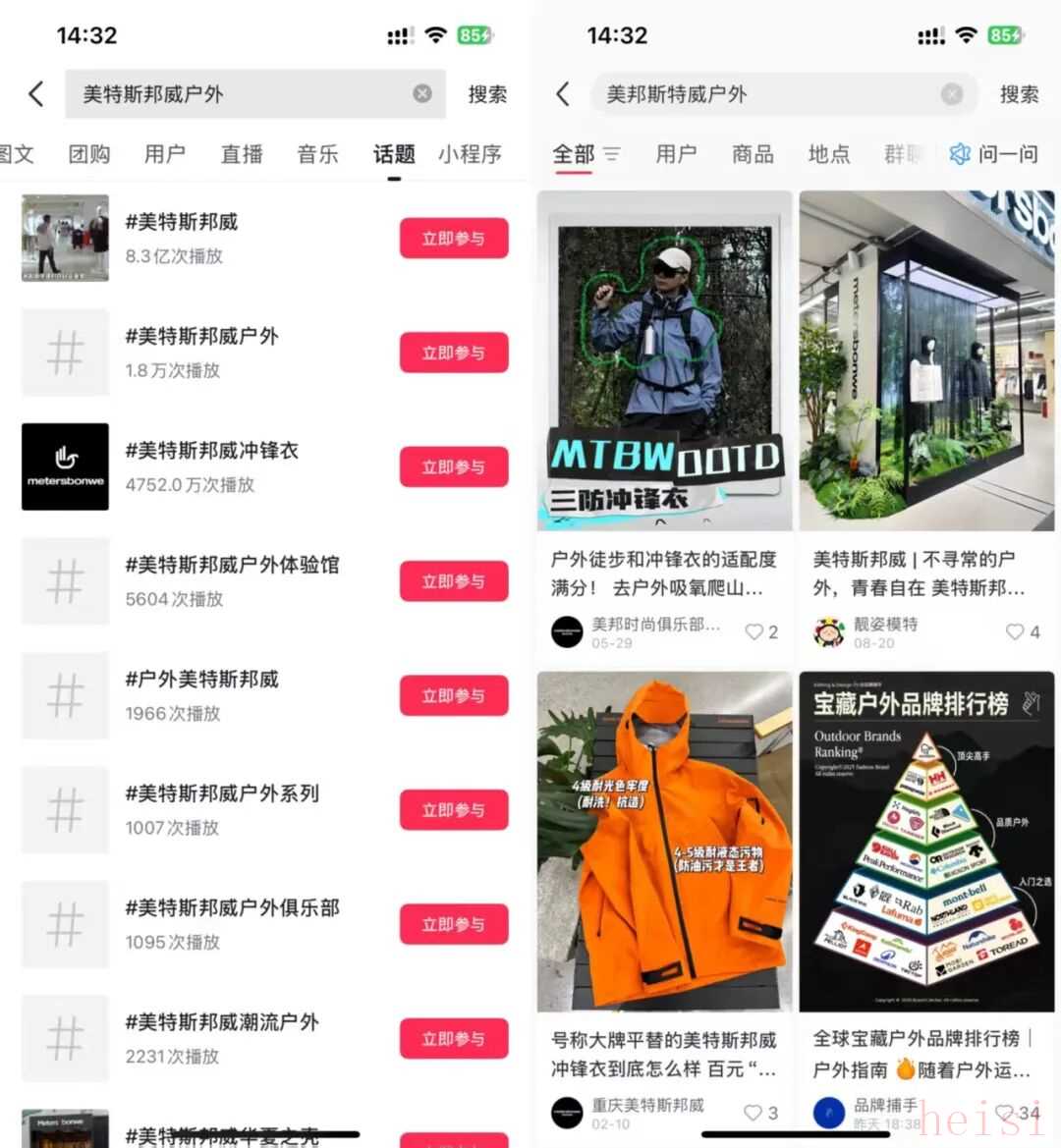 价位上,骆驼主打的冲锋衣也在 200~400 元区间,和美邦的“华夏之壳”几乎是正面交锋。公开信息显示,骆驼走的是“研产销一体 + 自建工厂”路线,在绍兴、佛山等地建设了超 50 万平方米的研发与生产基地,自营工厂负责生产包括冲锋衣、帐篷在内的大量核心品类,用重资产换稳定品质和技术积累。在品牌定位上,骆驼已经从“平替”向上拱。一方面通过更有机能感的设计、联名+IP 方式提升视觉辨识度;另一方面,在线上围绕城野露营、City Walk 等场景反复做种草,“山上全是骆驼”这样的段子在社交媒体上频频出现,逐渐让消费者把“骆驼 = 户外装备”这个认知扎下去。简单说,骆驼做的是“从平替起步,往专业靠拢”。在同一价格带,先用便宜抓住用户,再靠持续的产品力和明确的人设,把自己从“平替谁”变成“我自己就是那个符号”。反过来看美邦,在产品层面,“华夏之壳”是典型的“对得起价格”的轻户外单品:三防、Teflon 涂层、日常通勤、郊游足够;在品牌人格层面,它依然没走出“便宜、青春、校门口”那套老记忆,还没成功把自己从“潮牌 / 休闲服饰”切换成“轻户外首选”的心智。当产品只提供“够用”的功能,那所谓的“平替始祖鸟”,就很容易沦为一句噱头:今天是“平替始祖鸟”的美邦,明天也可能被下一家更便宜的品牌,甚至白牌“平替”。