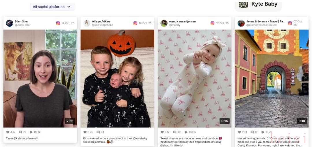 在Instagram平台,Kyte Baby官方账号坐拥85.5万粉丝,具备了一定的品牌影响力。