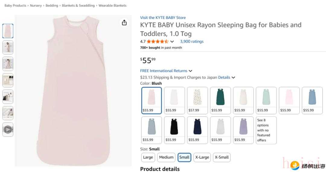 在Amazon商城,一款定价55.99美元的Kyte Baby婴儿睡袋在过去一个月售出约700件,商品累计评价3900条,评分4.7分。商品在保持较高销量的同时,也维持了稳定的用户口碑。