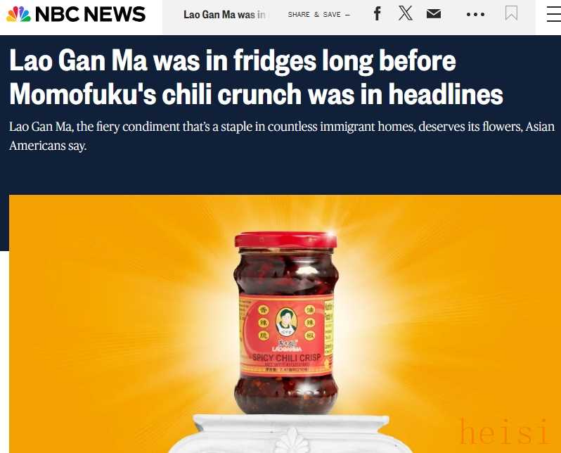“早在福桃的油辣椒成为新闻的很多年前,老干妈就在人们的冰箱里了。”美国全国广播公司(NBC)4月12日以此为题发文称,随着人们对福桃的做法感到不满,老干妈在美国又火了一把。