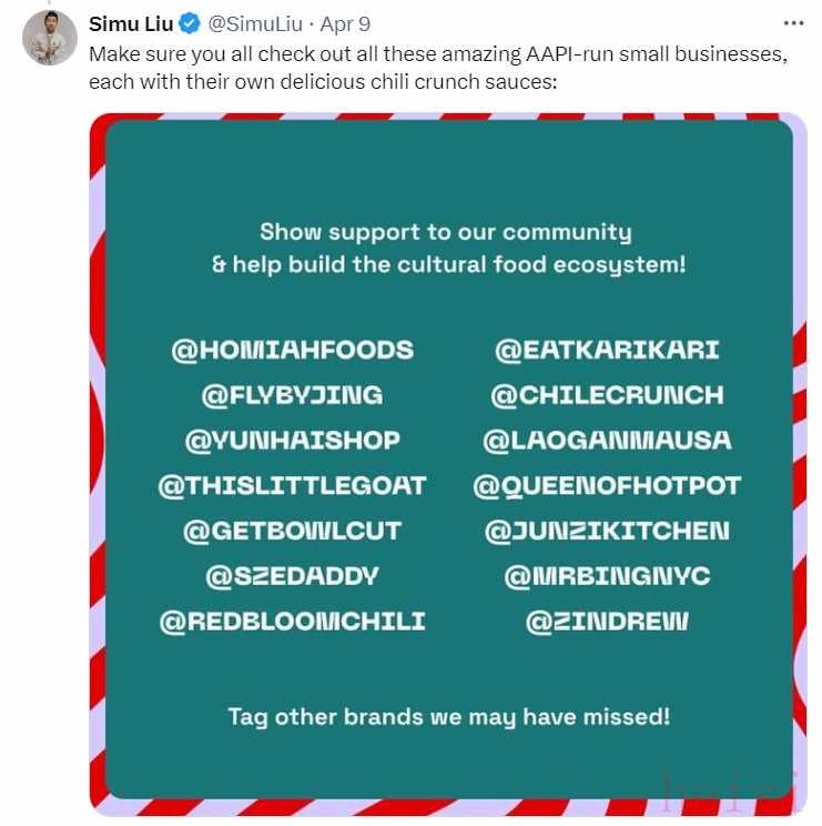 他还解释称,当初将旗下产品命名为“chili crunch”,“是出于对chili crisp(老干妈等品牌油辣椒所用英文名)的尊重,它与中国人息息相关,特别是老干妈的油辣椒”,所以当初给旗下产品取名时,因为产品有些不同,没有用“chili crisp”,而是启用了“chili crunch”。