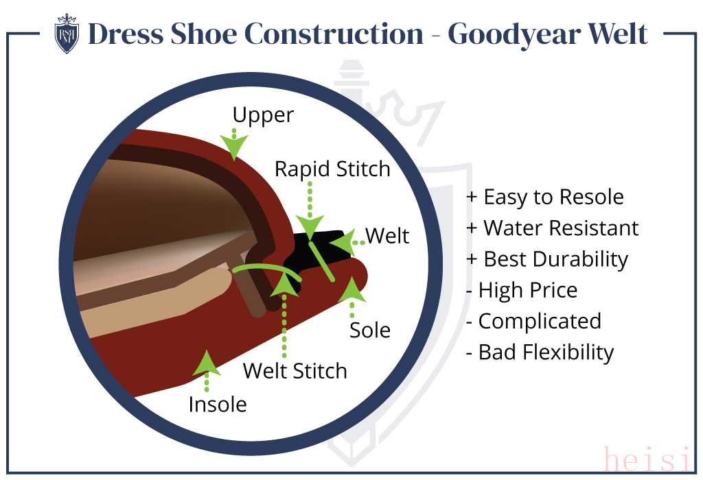 - 皮革鞋底:着装又时尚,但湿滑且耐用性较低。