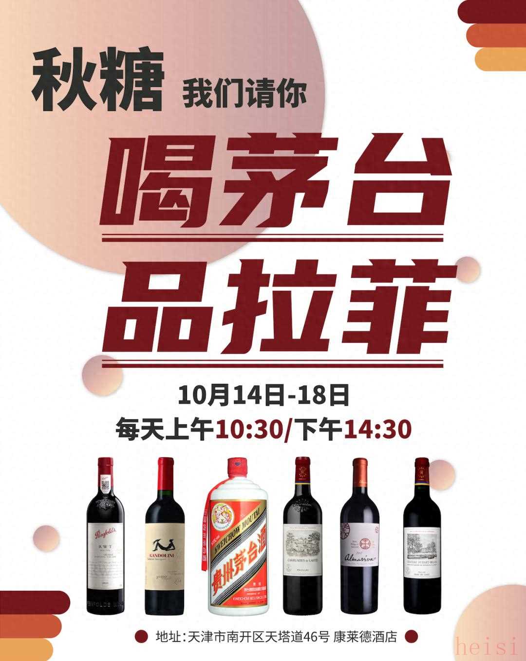 为了给这场盛会增添更多的“爆点”,主办方特别增加酒展重磅福利——请你“喝茅台、品拉菲”。欢迎大家届时前来,共赴这场金秋十月的津门美酒之约。