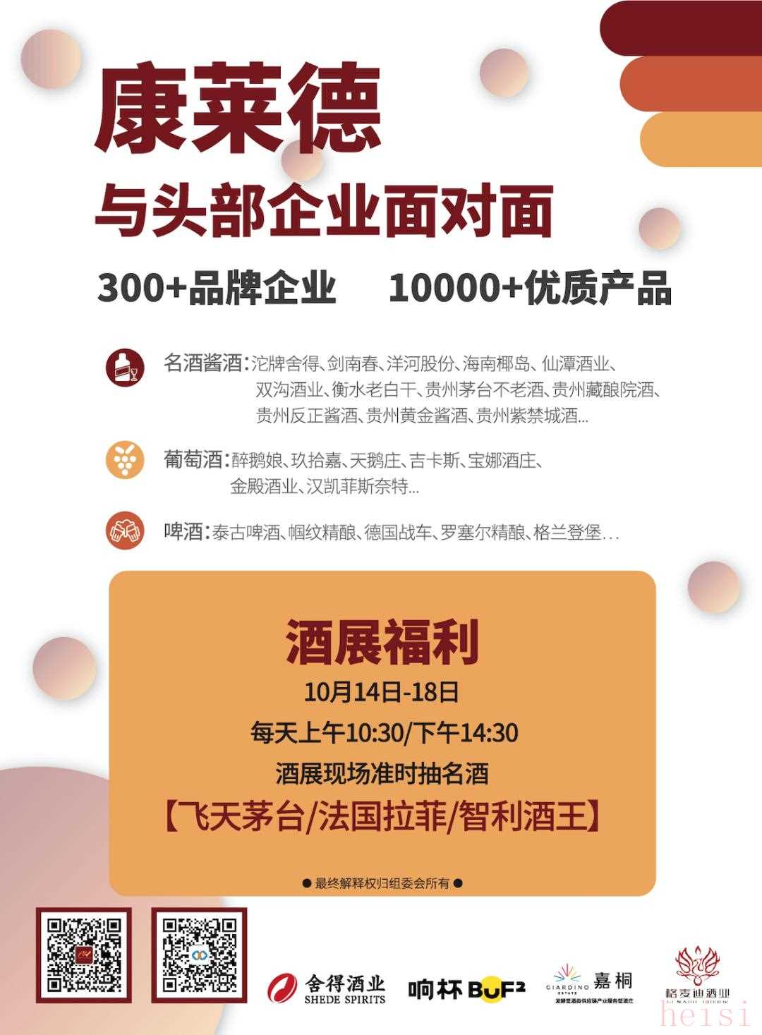 重磅奖品,等你来拿,欢迎大家届时来到康莱德与头部企业面对面,品美酒,拿好礼!