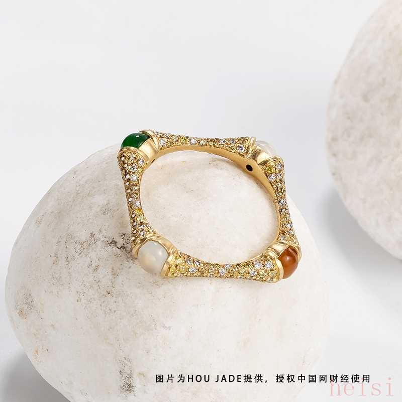 HOU JADE明星系列BAMBOO竹节款以颈链、戒指、耳饰为整套,以其独特的设计理念、精湛的工艺技法得以明星们的青睐,王子文、柳岩均有佩戴Hou Jade竹节款产品。