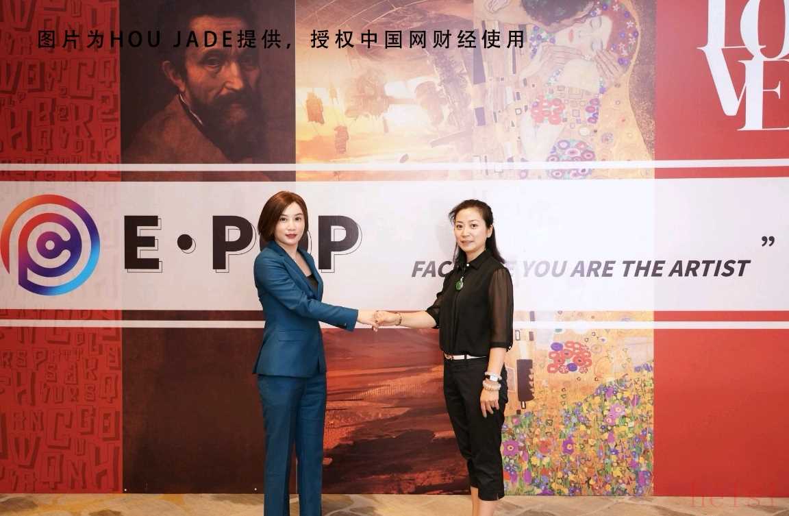 E•POP创始人侯绍华女士与HOU JADE品牌负责人周雪女士深切握手!这代表着跨行创新型合作发展方向与市场趋势!