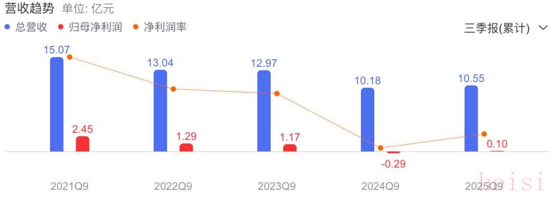 就算2025年前三季度营收稍微回暖,净利润率也只有0.1%,几乎等于不赚钱。