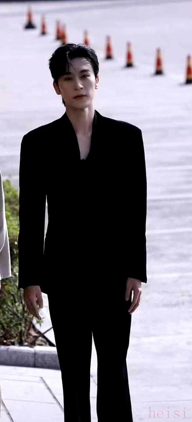 高旻睿的白西装没有logo,袖口里侧缝了一条黑线,线头藏在手腕内侧,只有他挥手时才能被拍到。