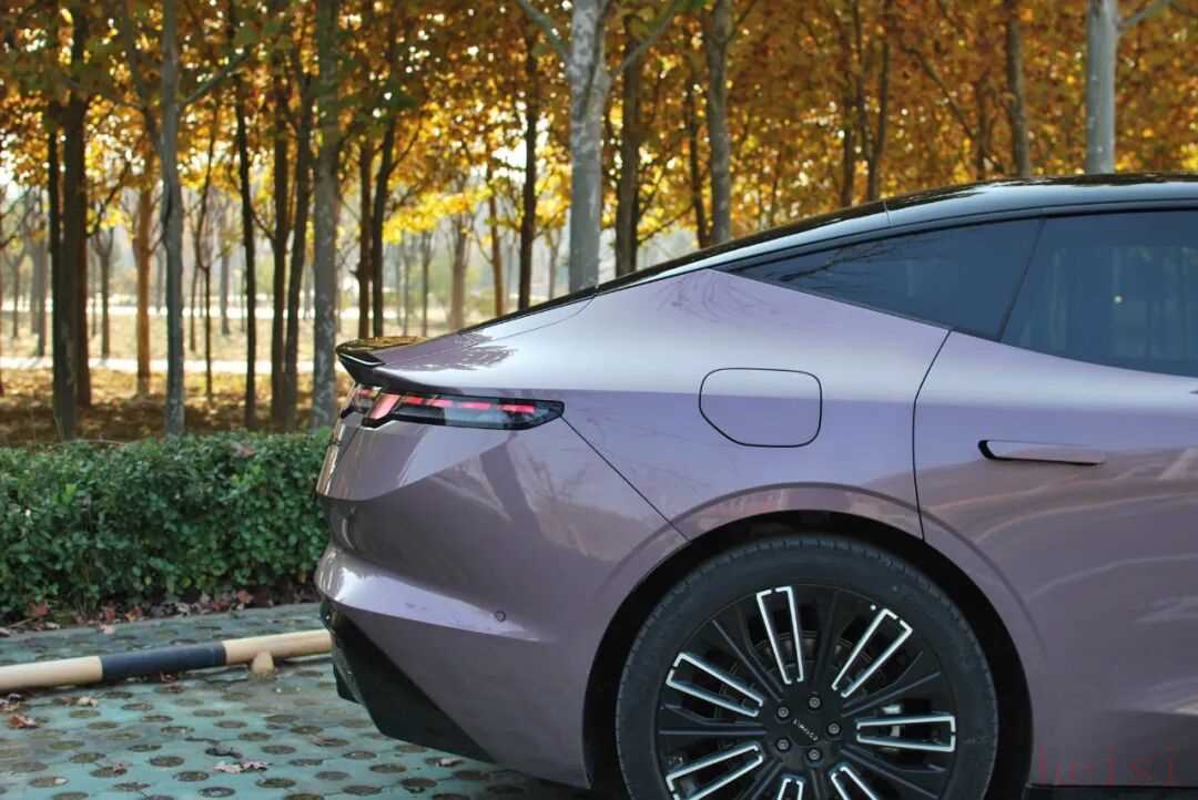 侧面与尾部延续了Z10的设计语言:双色车身、黑色车窗边框、贯穿式尾灯均得以保留。试驾车还额外选装了运动套件,包括前铲、侧裙以及电动尾翼,进一步强化了运动属性。