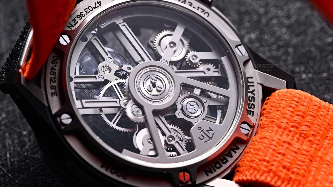 在机芯上更是减到极致,全新的飞行式发条盒保证了镂空程度高达80%。机芯结构为最坚固的三角形,还提升了防震属性,更是能够承受住高达5000的重力加速度。内部使用的是UN374自动机芯,搭配超大硅摆轮及硅游丝,振频为21600次/时,动储能力依然高达90小时。