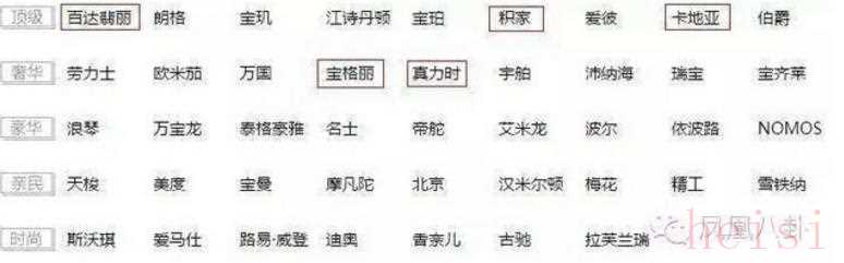 外行的童鞋们,首先来看一下名表的等级,红框里的是将要提到的: