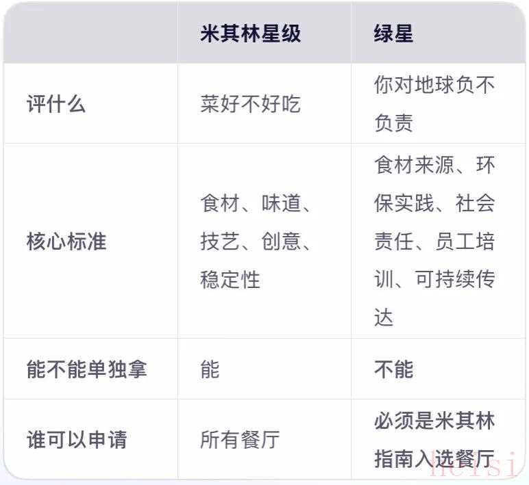 更离谱的是,有人以为“绿星”是“米其林一星的环保版”,甚至有餐厅问:“我们能不能直接申请绿星,跳过一星?”好吧,我们在这里真得说清楚了。米其林的绿星,不是“环保版一星”,也不是“低配三星”,它压根就不是同一个赛道。