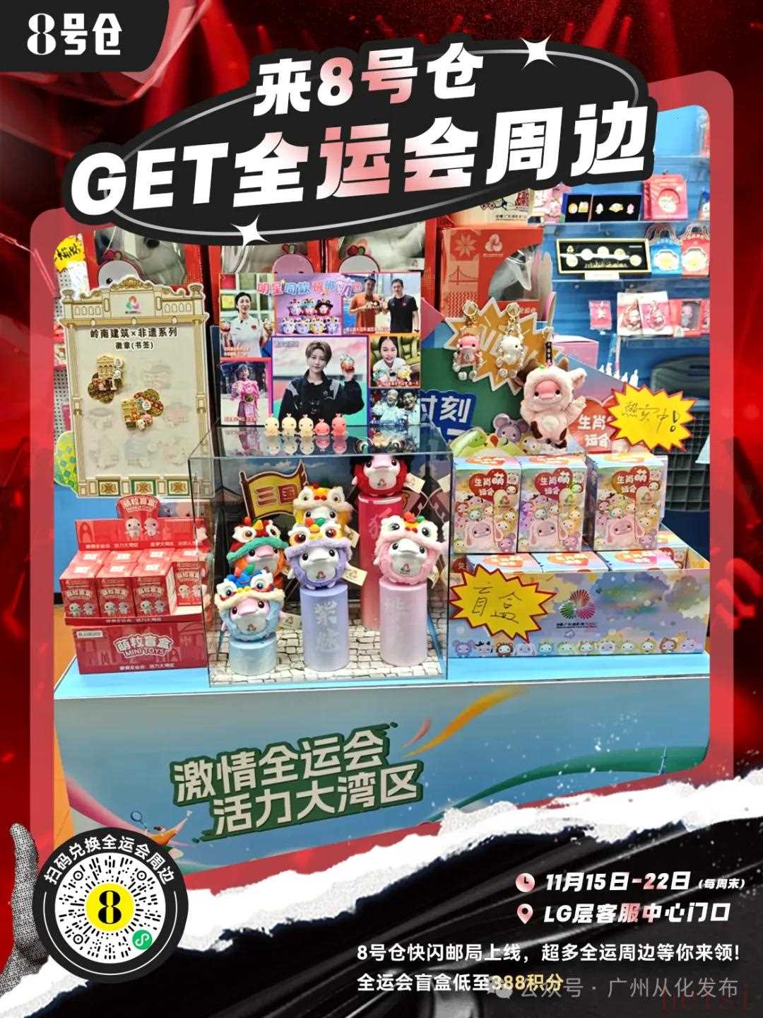 ✅ 全运会快闪邮局:11月15日-11月22日每周末13:00-20:30,LG层游客服务中心门口设有快闪邮局,积分就能兑换全运会周边,把运动活力带回家!