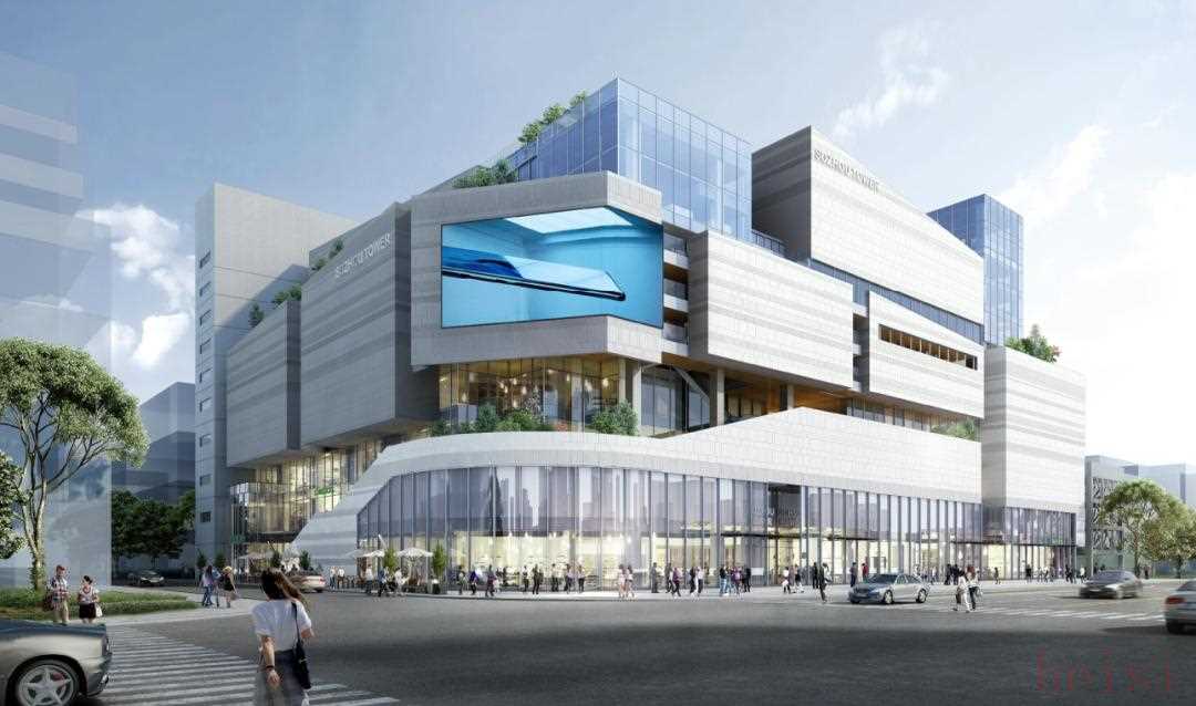 苏州金地广场效果图建筑的外立面,传承园林经典的“梅花窗”图腾,通过糅合国际前卫的时尚风格与质感建筑设计。