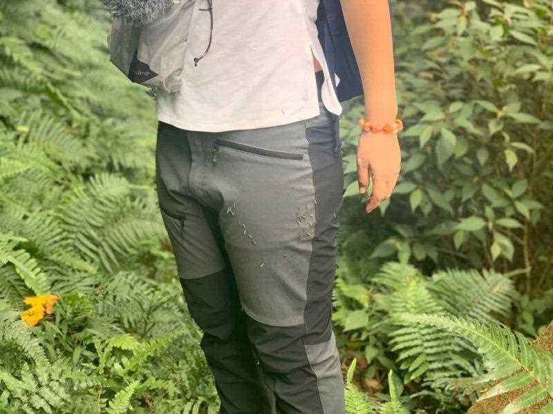 路段中我们也遇到强劲的对手-某种带剌的植物,但难缠一万倍。这种植物会在行进间黏在裤子上,虽然可以拔除,但会残留叶头在表布,完整拔除需要耗费不少时间。我自己是觉得很OK,Haglofs火柴棍的裤子其实不太会沾黏,行走间也没有造成不适,就等整天的行程结束再处理即可。