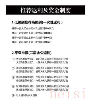 该代理提供的“价格表”中明确标注:货品直接利润,推荐返利,月销售业绩奖金。随后,对方又发来一则“推荐返利及奖金制度”表,内容涵盖了低级别推荐高级别及评级推荐代理会发生的返利及奖金制度。