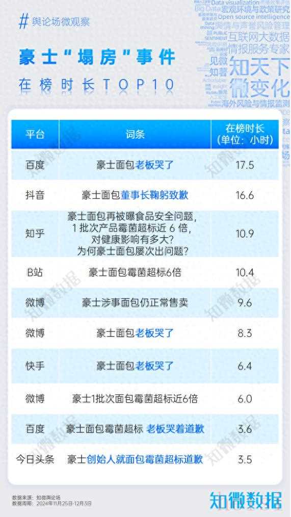 对比同期陷入类似风波的豪士面包,公关处理方式就更加科学。去年11月底,官方抽检报告点名豪士面包存在食品安全问题,面包霉菌含量超标。