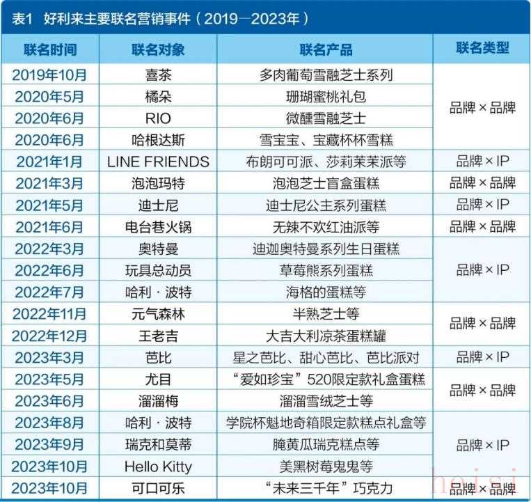 - 联名营销上:2019年以来,好利来相继与喜茶、哈根达斯、芭比在内的40多个品牌或IP进行联名营销,持续创造品牌话题度。