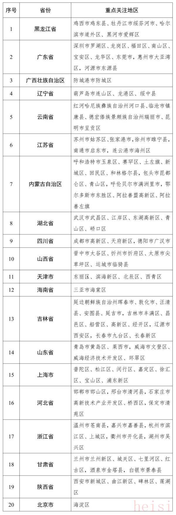 辽宁省重点关注地区一览表
