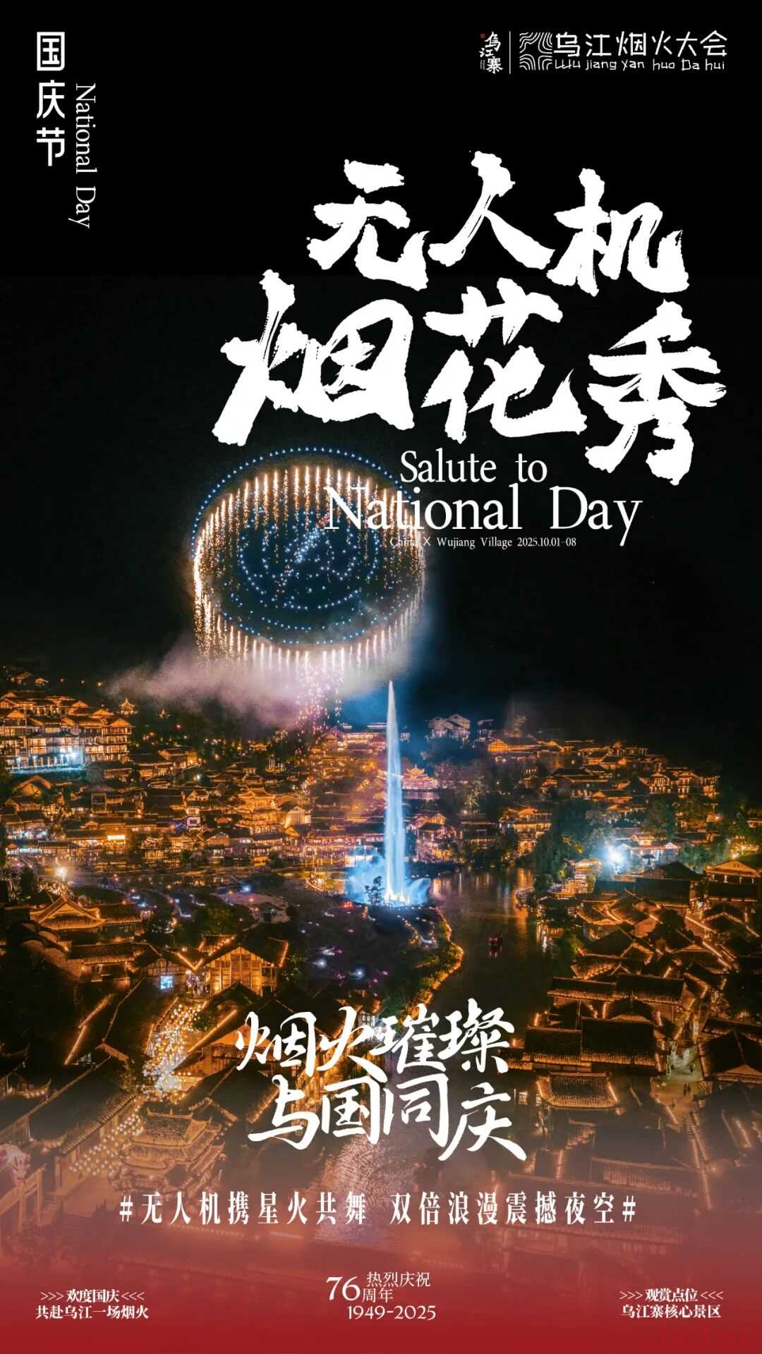 乌江烟火会地址:乌江寨时间:10月1日-10月8日内容:融汇流光溢彩的水舞秀、水上歌姬,岸畔非遗特色的打铁花、炸纸龙,以及空中多维交织的无人机与凤凰飞天,打造一场集地面、水面、空中于一体,独属乌江寨的全天候烟花艺术盛典。//其他活动月满红村 心归花茂地址:苟坝·花茂景区时间:10月1日-10月3日内容:在顺然农场开展拦门酒、打糍粑等民俗体验;在红军茶馆开展手鼓表演、茶艺展示;在栖谷露营基地开展自助烧烤,篝火晚会等活动。牛王争霸赛地址:洪关苗族乡太阳坪景区时间:10月1日-10月8日内容:在景区斗牛场开展牛王争霸赛、开展登山互动体验、举办苗族民俗文化文艺展演。