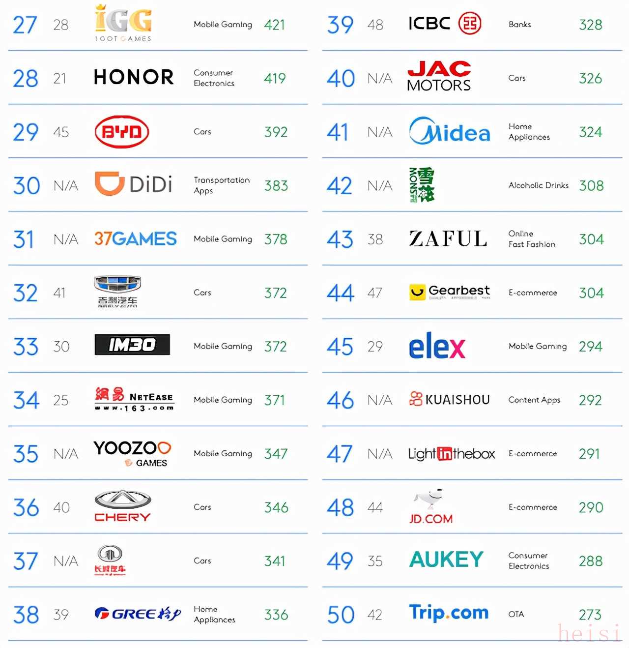 - 华为:第50名