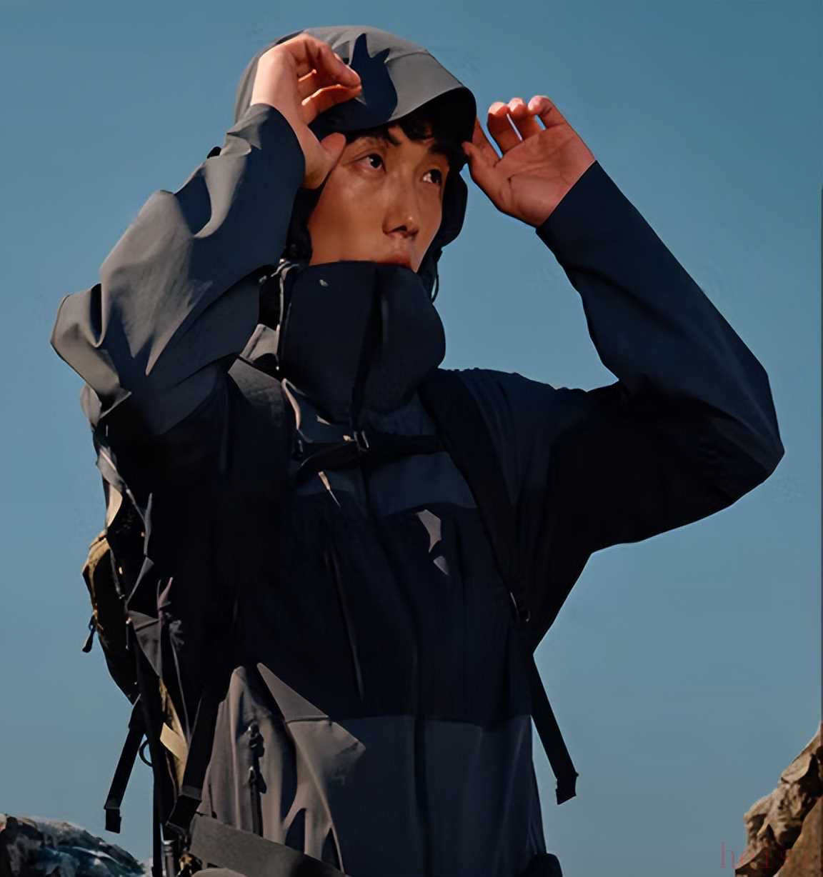 在版型设计上,男女款分别优化剪裁,贴合不同身形,活动更自在;连帽配备三维调节系统,可根据头部轮廓调整,紧密防风,成为兼顾明星同款热度与户外实用性的国货单品。