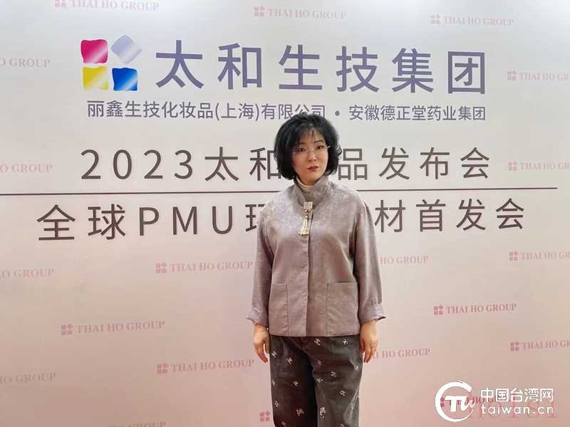 郭襄颍在太和集团2023全球PMU环保化妆品包材首发会现场。(中国台湾网 发)