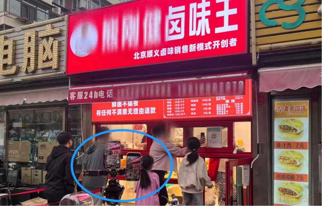 图8:在线下门店前架起手机做线上直播的小店(作者拍摄)