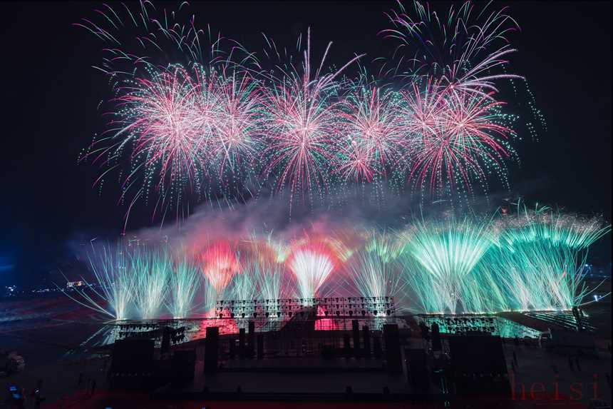 "规模宏大:" 上栗焰火秀通常在重要节日、重大活动或庆典场合举行,场面宏大,气势磅礴。