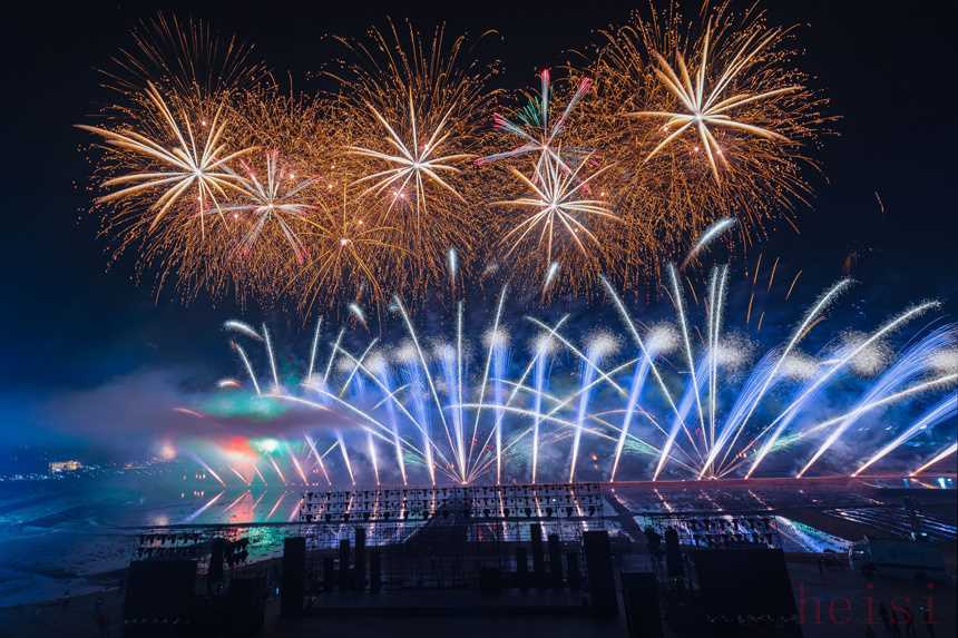 "设计精巧:" 焰火秀的设计往往结合当地文化、历史或活动主题,画面精美,寓意深刻。