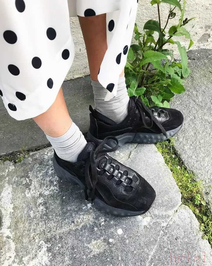 这双鞋备受女生追捧的原因应该是厚厚的鞋底帮了不少忙,自带增高效果。除了绑鞋款,还有粘扣款、涂鸦款……非常多样。