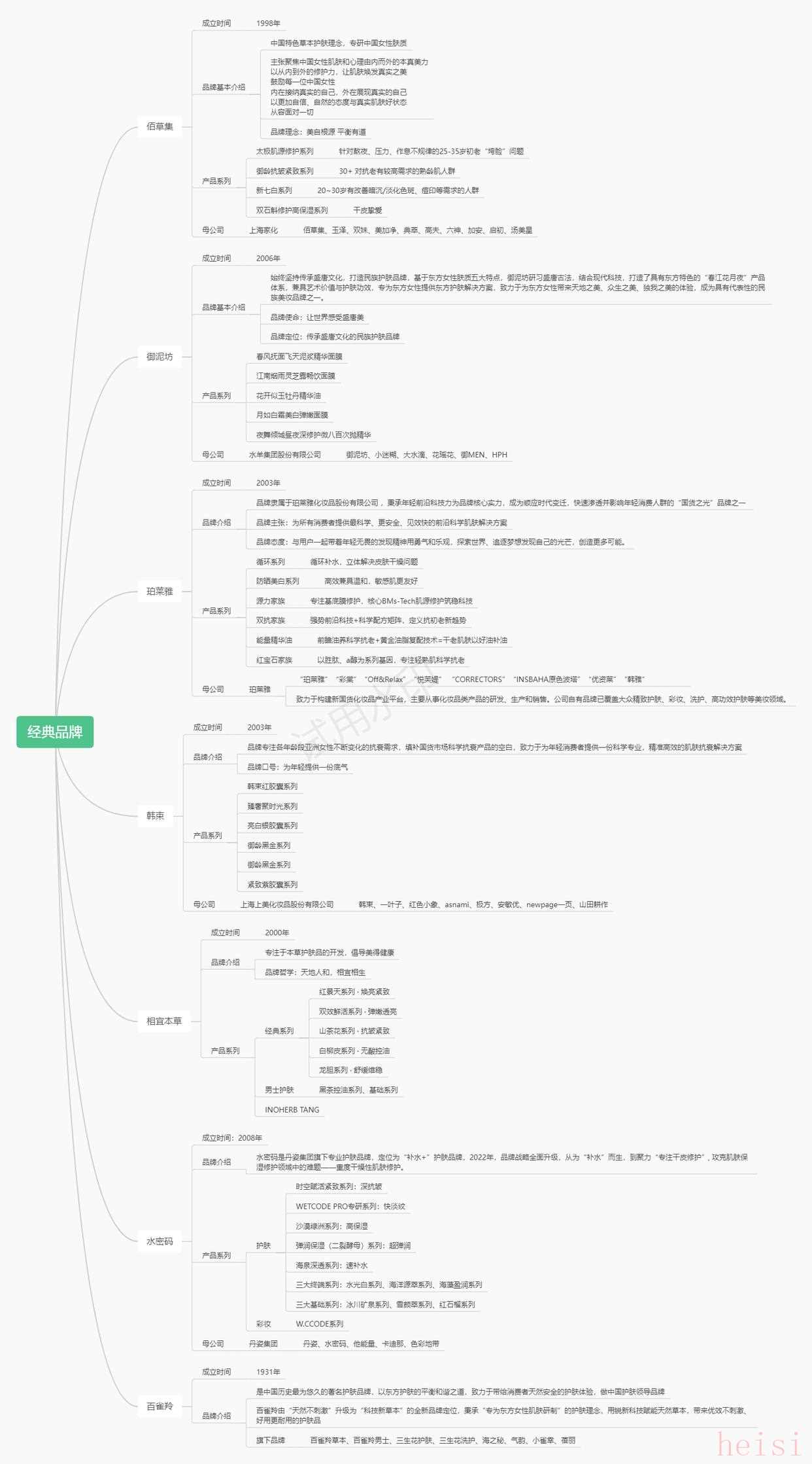 "佰草集:"1995年成立,以“中华传统植物精粹”为品牌理念,推出了一系列以草本提取物为核心的功效型护肤品,如“金缕梅洗面奶”、“人参精华液”等,迅速成为草本护肤