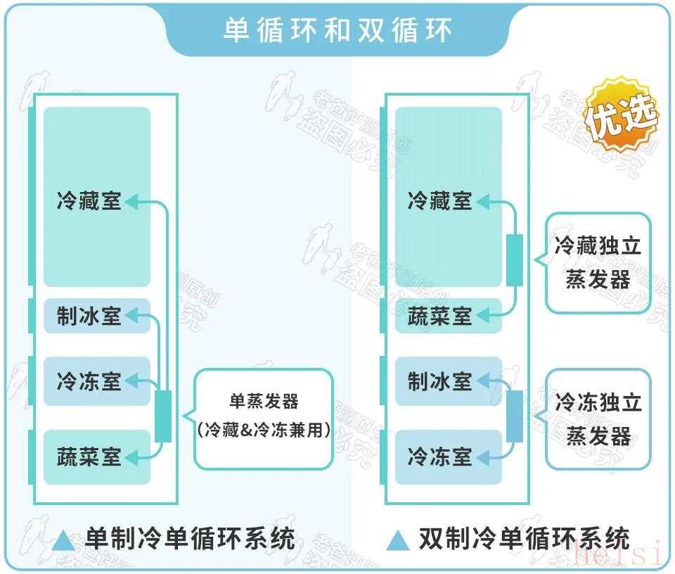 理由:双循环温控更精确,制冷效率更高,节能效果更好,冷藏室和冷冻室不容易串味。
