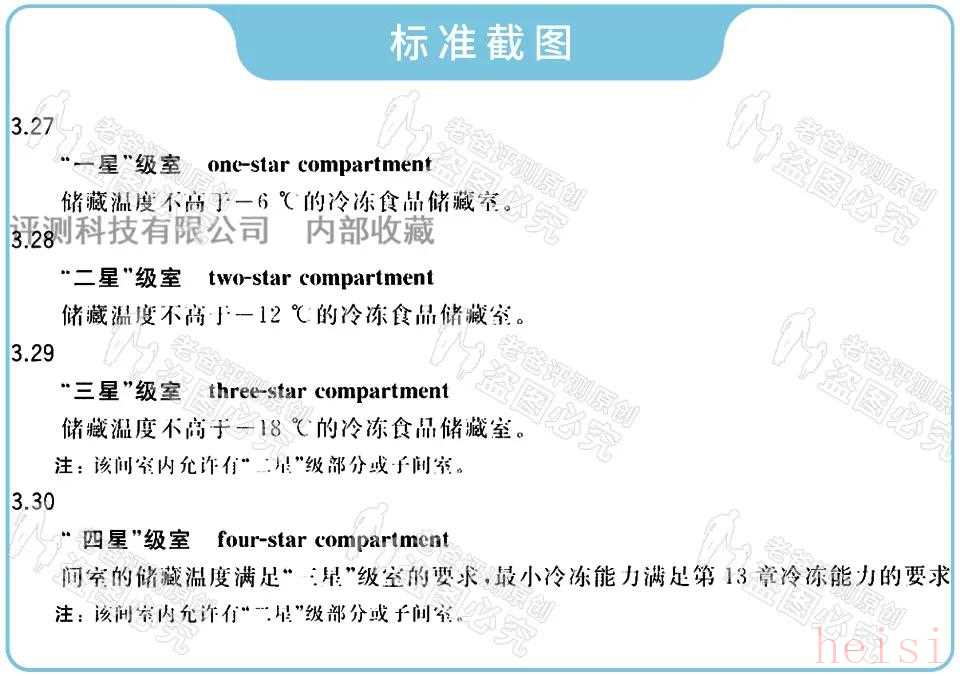 冰箱的冷冻室有 4 个星级分类,这个星级分类是指冰箱冷冻室在 24 小时内冷冻食物的能力。一星级 ≤-6℃、二星级 ≤-12℃、三星级 ≤-18℃、四星级 <-18℃。