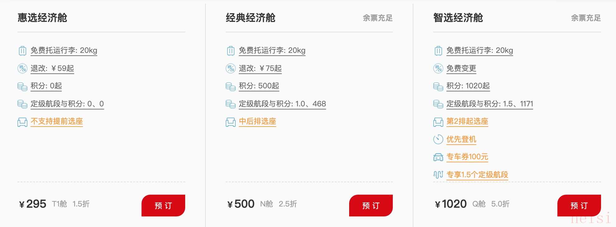 目前,航司的品牌运价体系大都是根据经济舱舱位的退改规则、选座、升舱、积分、行李托运、餐食、登机等服务不同,进行不同的定价,为旅客提供差异化服务。