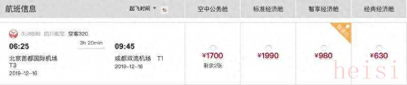11月底,四川航空正式推出经济舱品牌运价体系。品牌运价体系区别于传统的定价体系,是将经济舱进一步分级,按照服务定价。比如四川航空北京-成都航线,经济舱分为三个等级,标准经济舱、智享经济舱和经典经济舱,价格分别为1990元、980元、630元,价格差距不小,旅客享受的权益也不同。其中标准经济舱退票,最高收取票价15%费用,变更免费,可累积2456里程;与标准经济舱价格相差1360元的经典经济舱,退票则最高收取票价90%费用,变更最高收取票价70%费用,不能累积里程。
