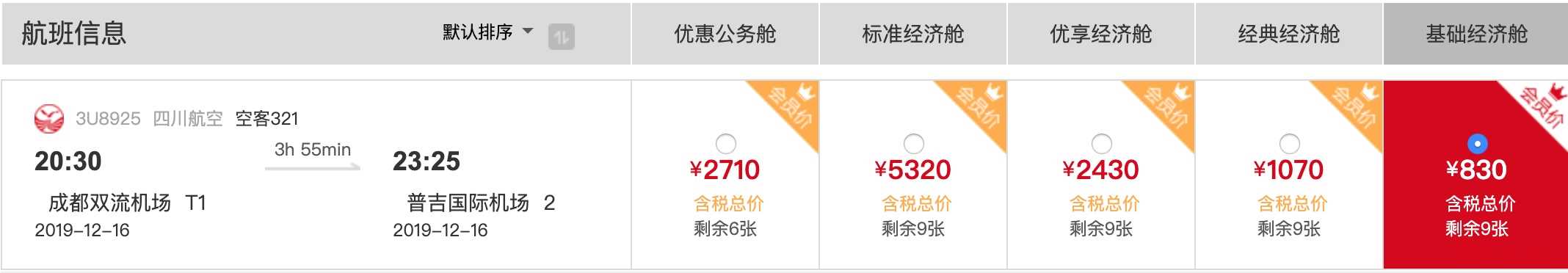 在四川航空成都-普吉航线中,出现了基础经济舱产品,除了退改签政策比其他舱位严格——不可退改不可签转,还无免费行李额。