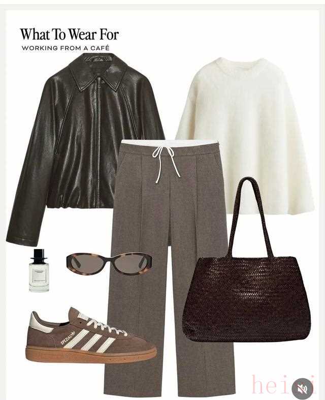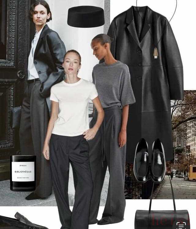 "鞋子:" 一双简约的乐福鞋或牛津鞋,颜色与皮衣相呼应。