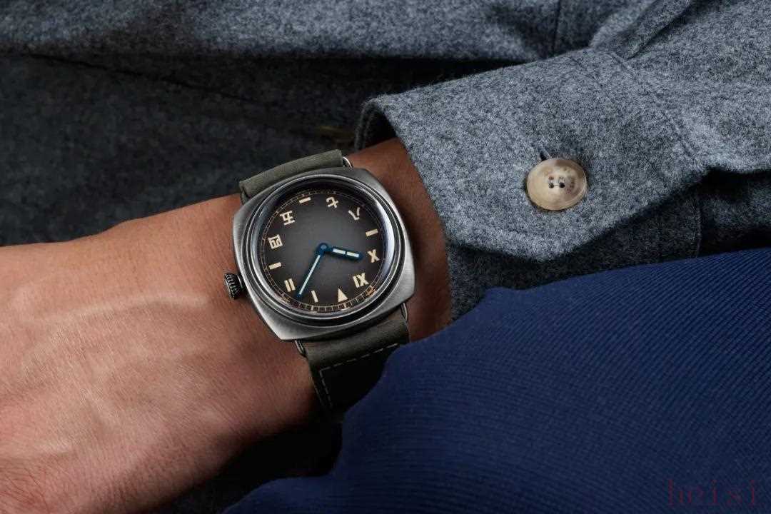 加州面是沛纳海的标志,而加州面上半部分保留10、11、1、2罗马数字,下半部分4、5、7、8时标采用中文数字,一枚中国特色的盘面应运而生,是不是足够特别?品牌将这一动作视为构筑与中国沛迷之间的深厚情感联结。除此之外,表盘的黑色处理强化复古观感,巧妙呼应早期沛纳海表盘所呈现的氧化效果,拱形蓝宝石玻璃表镜则令人联想到早期为意大利军队研发的Radiomir镭得米尔系列腕表所采用的有机玻璃表镜。米色Super-LumiNova®X1夜光涂层在昏暗环境中散发出绿色夜光,还是熟悉的沛纳海的味道。搭载P.5000手动上链机芯,8日动储也是绝活,限量300枚。
