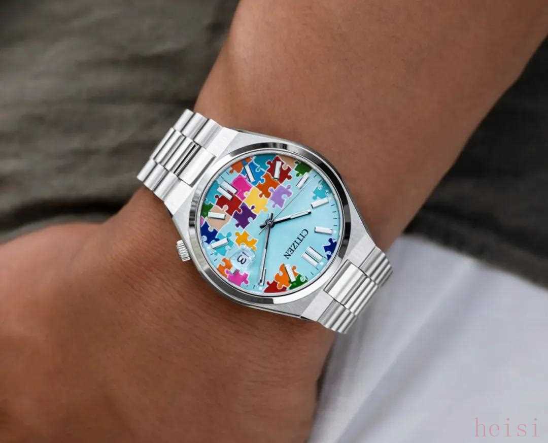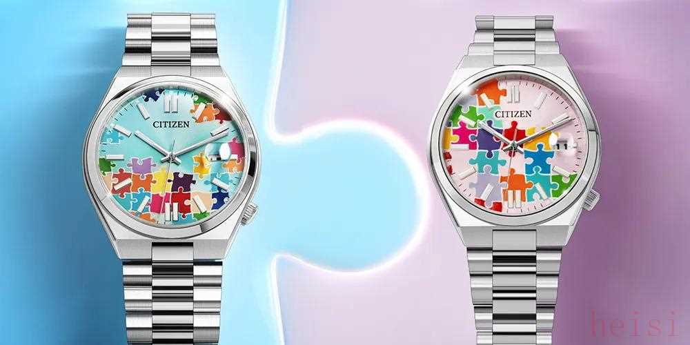 西铁城Citizen Tsuyosa Puzzle限量款 售价:890美元,约合人民币6,300元自2023年劳力士推出了拼图盘的Day-Date36并火出天际后(同年,蚝式恒动也推出了泡泡盘“庆典”),这种“好像也没什么指代性”的“卡通风格”的设计似乎就成了一种时尚,我甚至都怀疑劳力士的设计师是不是在家随便拍了两张儿子的拼图玩具照片交上去就过审了……但吐槽归吐槽,这种盘面设计从创意的角度说确实也有独到之处,在稀缺性上来说,也是市面上极其罕见的。