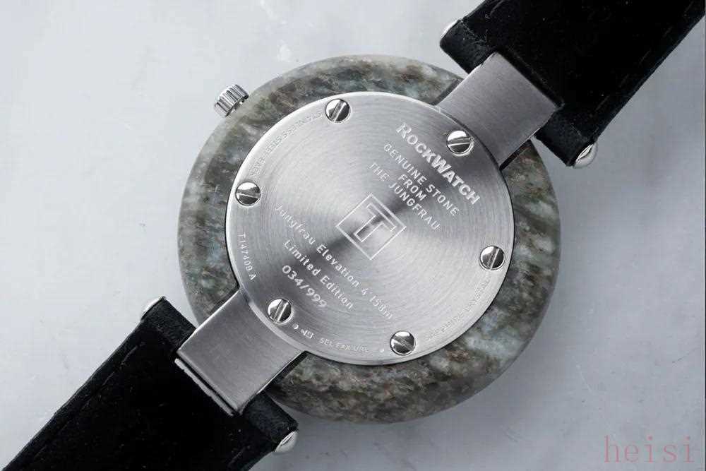 本次新推出的RockWatch限量999枚,原材料取自阿尔卑斯山的少女峰花岗岩,选取天然石料,自然也就能在表壳和表盘上看到天然的石纹理,我觉得这是矿物类盘面最迷人的地方,而天梭把这份迷人扩张到了整个手表。花岗岩的材料颜色和纹理,不仅带来一种特别的视觉效果,甚至还带了点时代沧桑的感觉,让人联想到漫长年代中地壳运动生成这些石头的过程,自然历史的厚重感就这么切割成一个圆盘摆在了你的手腕上,这感觉岂不是棒极了?