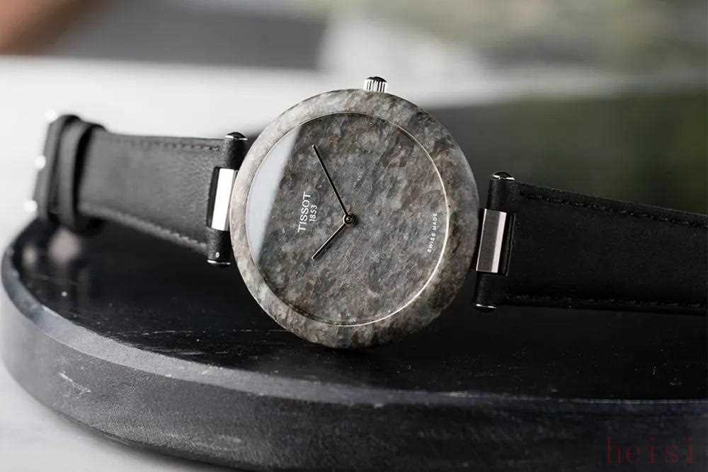 在腕表盘面的材质上,采用矿物的很多,贝母、陨石等材质早已不是什么新鲜的东西,但是整表(除了底盖)全部用天然花岗岩制作的,还真挺少见的。不好预测的市场反馈,不菲的成本投入摆在眼前,所以不是每个品牌都有动力去做这件事,天梭也算敢为人先了,并且确实在历史上取得了成功。