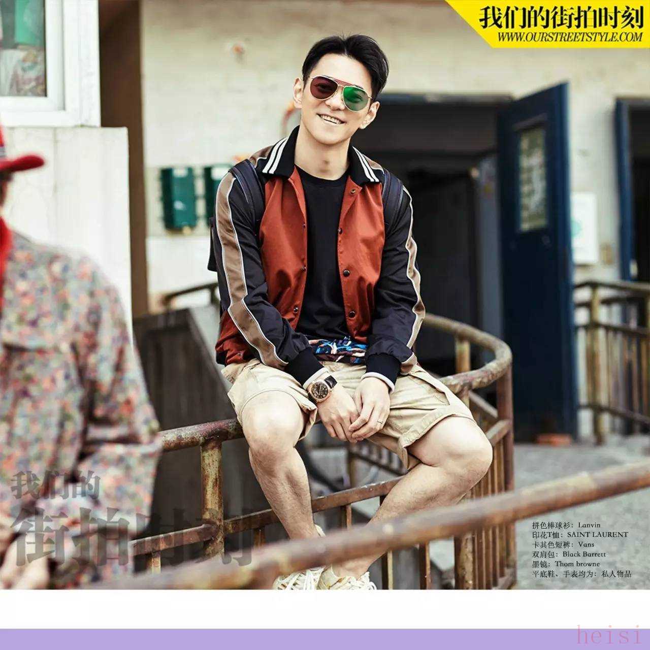 Tips:简约卡其短裤是春夏的必备单品,而上身服饰的选择就显得更加重要,简单利索的拼色棒球衫搭配黑色T恤,棒球衫袖子的拼色则跟内搭T恤 短裤的颜色十分映合,整体感突出,最后再配上一副今夏流行的颜色墨镜,完美!