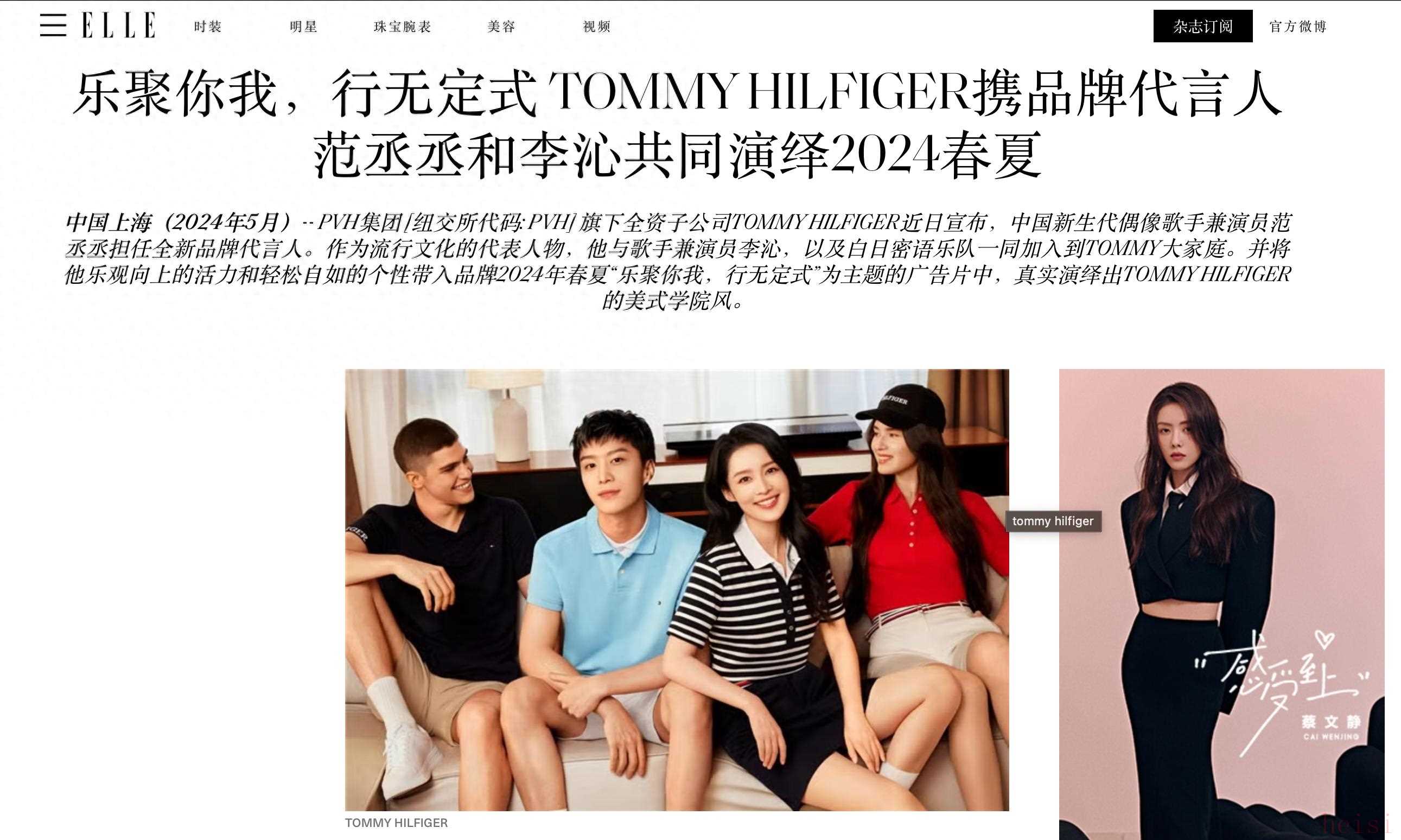 公开资料显示,Tommy Hilfiger在不同时间段和不同地区有多位代言人,包括李沁、范丞丞、金智秀、陈伟霆和李泳知等,他们分别以各自独特的形象和风格诠释了品牌的精神和产品特色。从代言官宣及相关活动报道的时间线来看,中国籍代言人当中,李沁和范丞丞的代言可能还在合约期内。