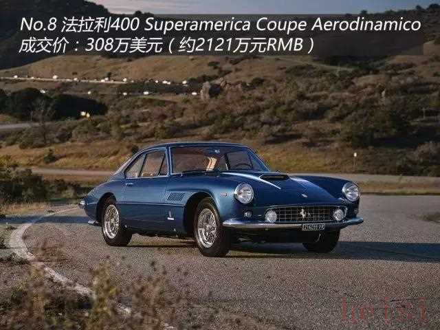 法拉利400 Superamerica Coupe Aerodinamico由宾尼法利纳在1960年都灵车展上展示的设计图发展而来,外观轮廓彰显优雅格调。本次拍卖的这辆是2420mm的短轴版,当年总共制造了17辆。