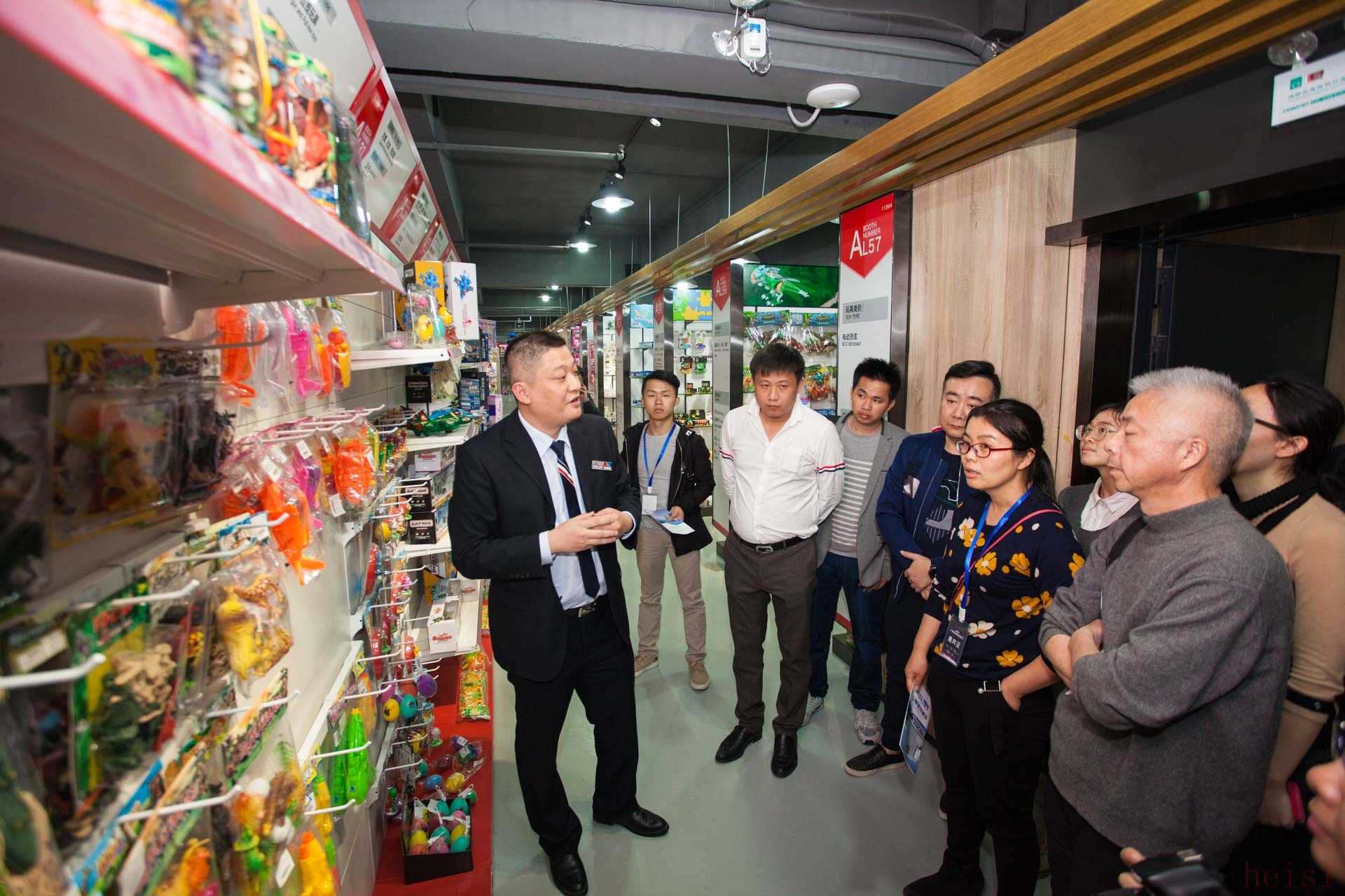 在许泽荣的带领下,调研团参观了五楼和六楼展区、玩具文化长廊、厂家等候区、洽谈室等各功能区。据介绍,宏腾玩具展厅拥有展位超过4000个,参展商家超过4000家,展厅参展产品超过25万种,拥有多达61万的玩具产品数据库。展厅以集中管理为特色,只收取参展商展位费,不参与交易过程也不抽取佣金。