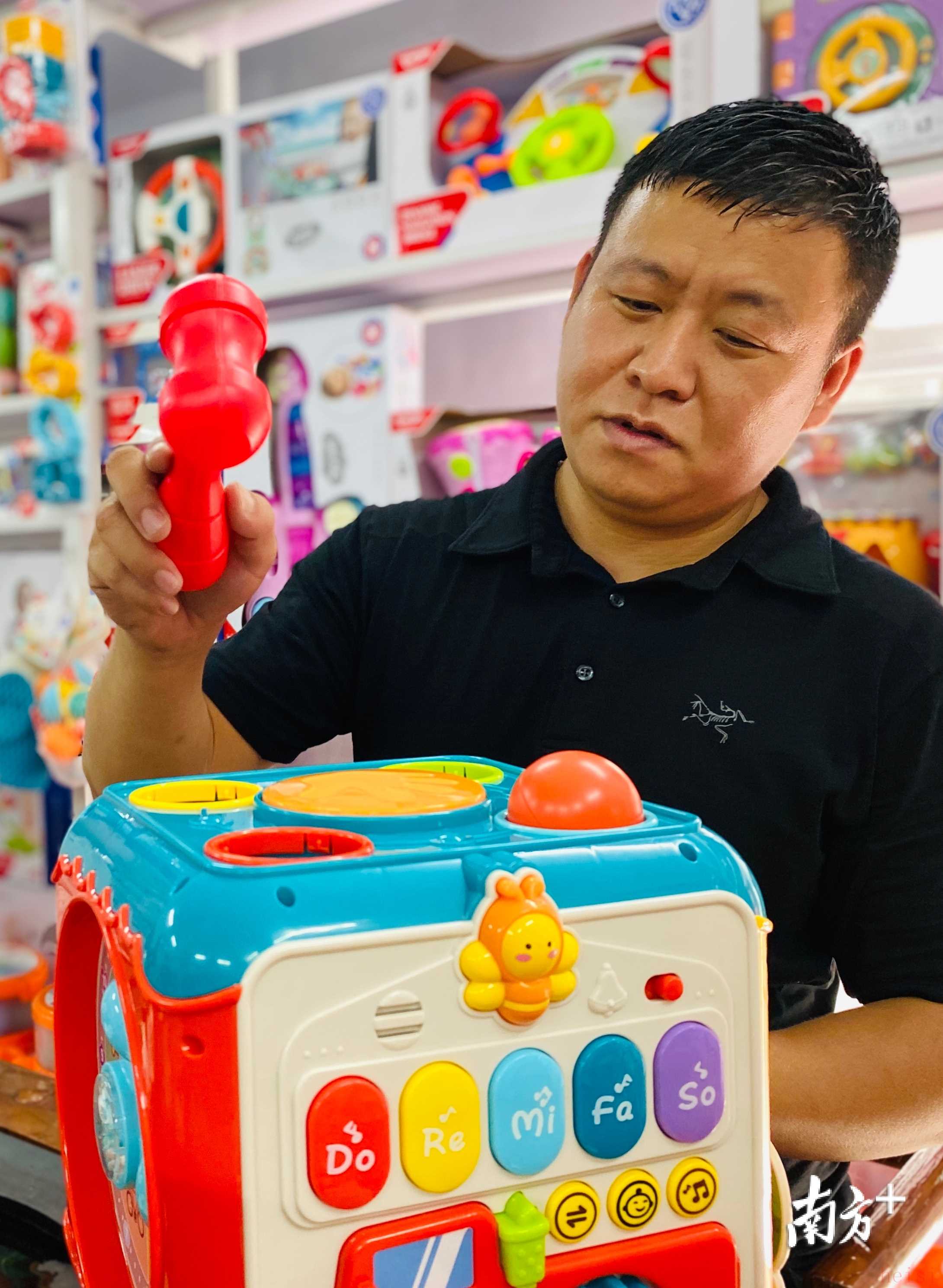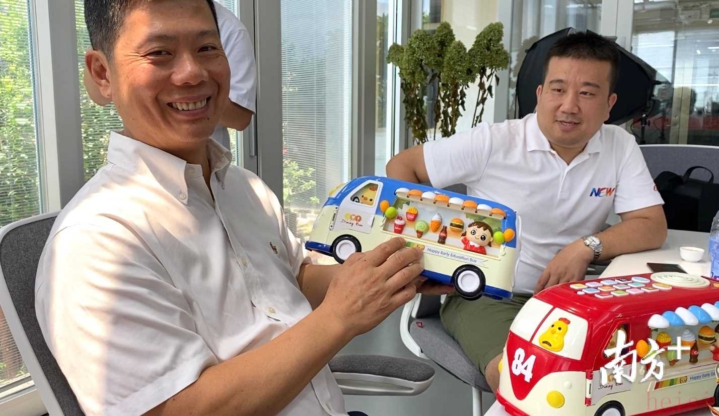 谷雨玩具董事长王泽亮(左)展示今年双11将推出的新品。